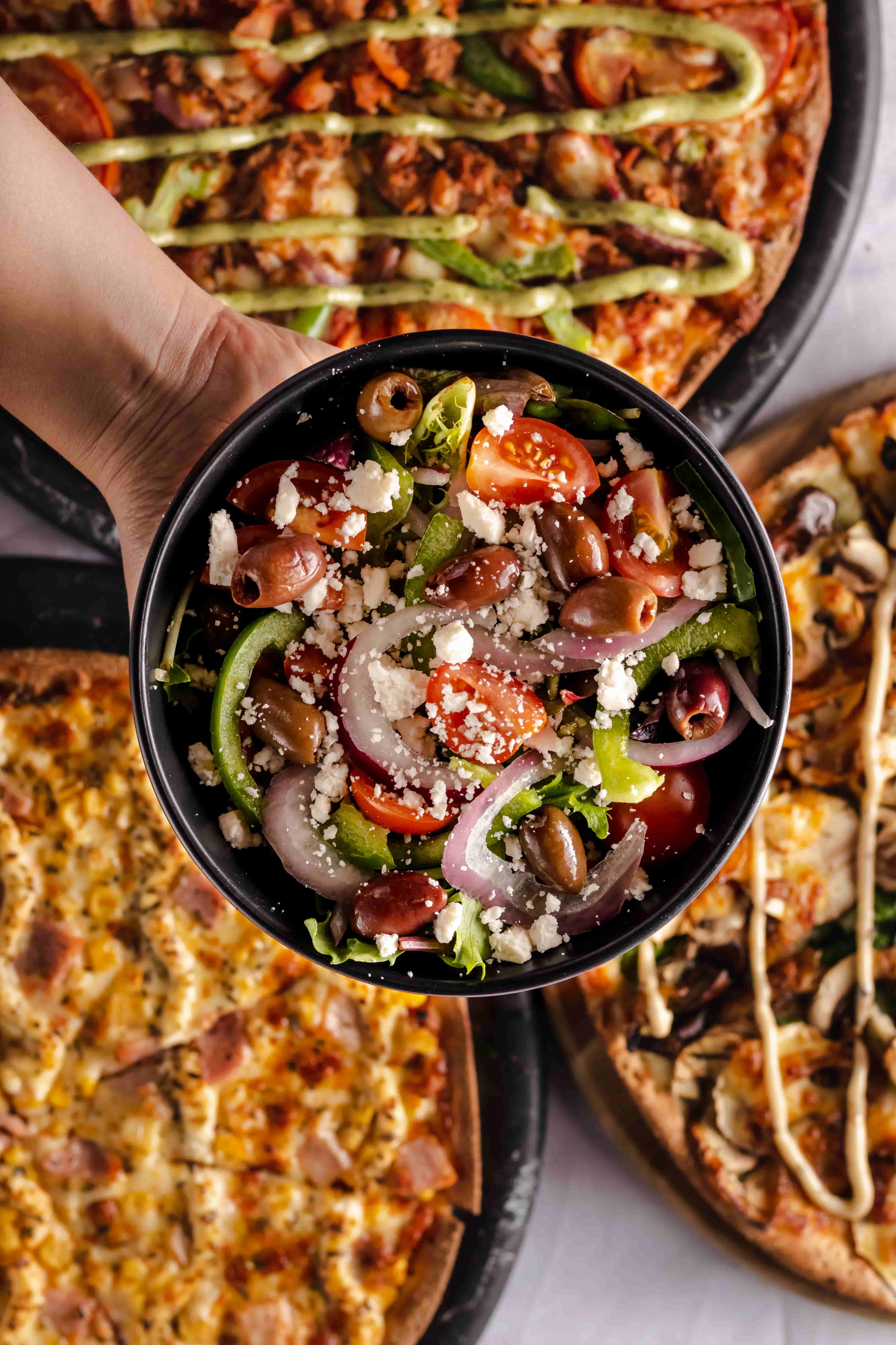 Greek Style SaladGreek Style Mixed Leaf Salad, Balsamic Dressing, Mixed Leaves, Spanish Onion, Fresh Capsicum, Cherry Tomatoes, Olives, Feta Cheese and Oregano$65-